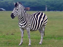 The Burchell's zebra is built like a stocky pony. Its coat pattern can vary greatly in number and width of stripes. The stripes are a form of disruptive coloration which breaks up the outline of the body. At dawn or in the evening, when their predators are most active, zebras look indistinct and may confuse predators by distorting distance. Their shiny coats dissipate over 70% of incoming heat.